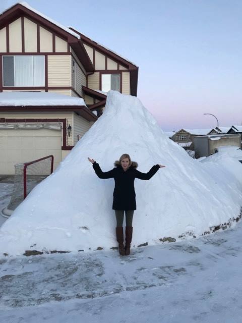 - (Photo Credit: Tristan Bauer) Katie Summers in front of a mountain of snow in the City of Calgary after the first 3 rounds of heavy snow*