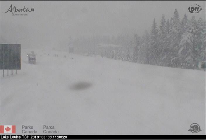 - Highway 1 at Lake Louise AB shut down February 8, 2018 webcam via 511 Alberta and Parks Canada. (Courtesy of Province of Alberta)*