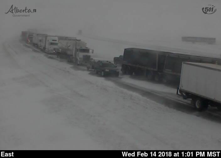 - 511 Alberta Webcam pic along Highway 1 at Bassano at the time the highway was closed and trucks were waiting. (Courtesy of Province of Alberta)*
