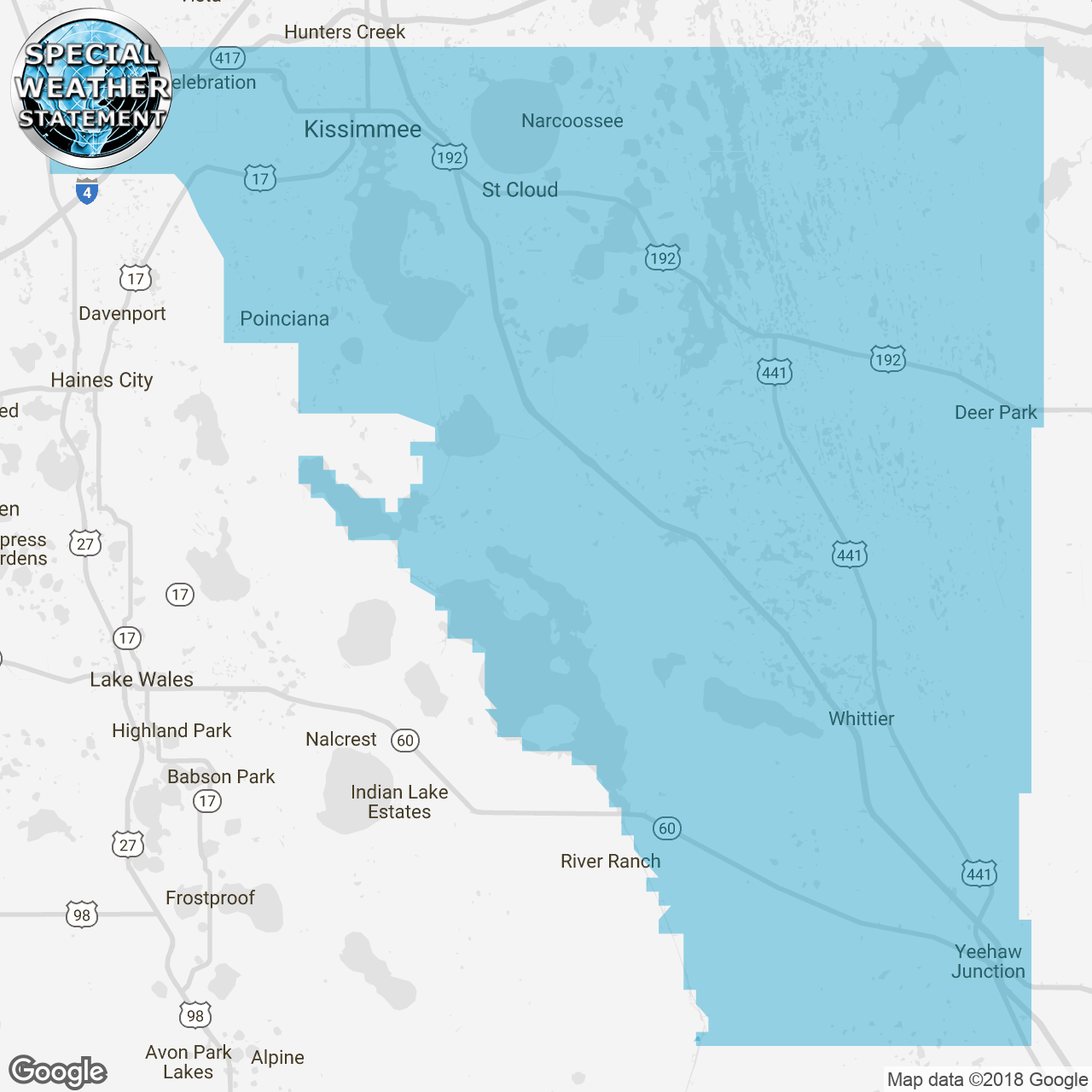 ...SIGNIFICANT WEATHER ADVISORY FOR SOUTHEASTERN OSCEOLA COUNTY UNTIL 730 PM EDT... At 630 PM EDT, Doppler radar was tracking a strong thunderstorm 7 miles south of Kenansville, moving northwest at 5 mph. Winds in excess of 40 mph will be possible with this storm. Locations impacted include... Kenansville and Lake Marian.