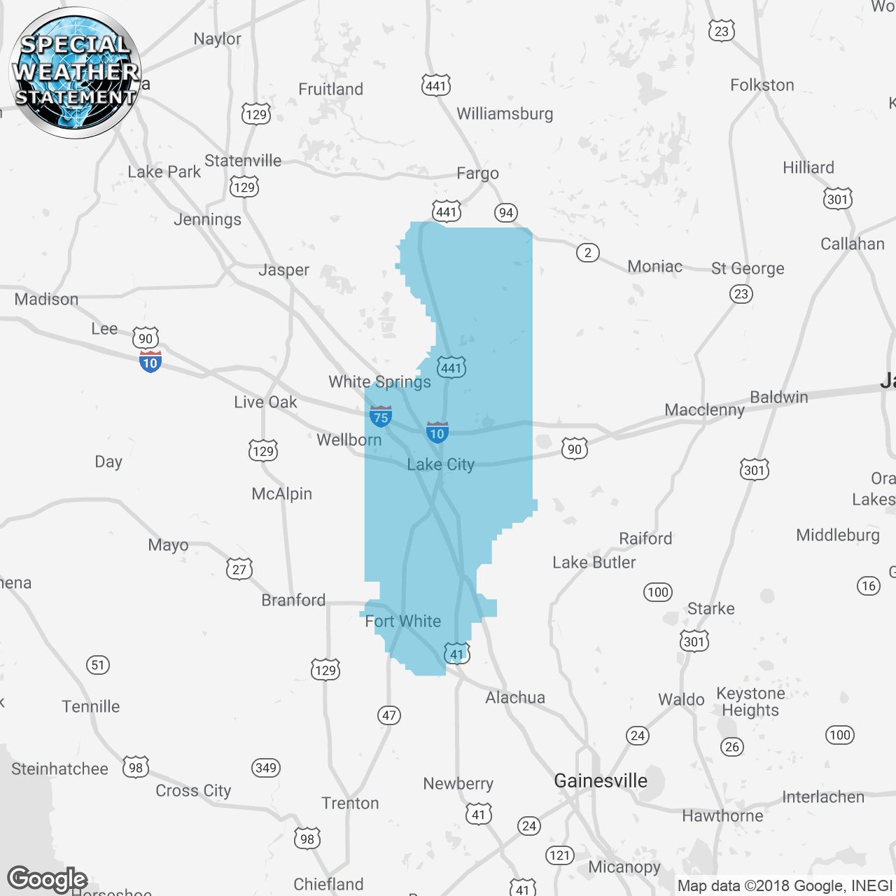 ...SIGNIFICANT WEATHER ADVISORY FOR NORTHWESTERN ALACHUA AND SOUTH CENTRAL COLUMBIA COUNTIES UNTIL 700 PM EDT... At 627 PM EDT, Doppler radar was tracking a strong thunderstorm near High Springs, or 9 miles southwest of Worthington Spring, moving south at 15 mph. Excessive cloud-to-ground lightning and wind gusts of 45 to 55 mph can be expected along with possible minor damage. Locations impacted include... High Springs, Fort White and La Crosse.