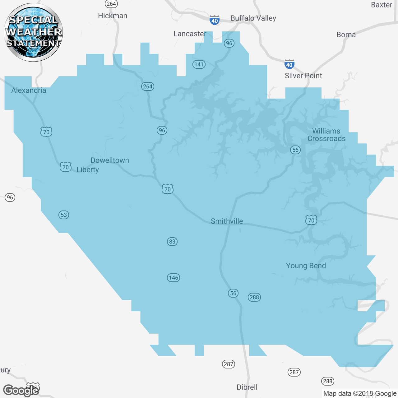 ...SIGNIFICANT WEATHER ADVISORY FOR SOUTHEASTERN DE KALB COUNTY UNTIL 200 PM CDT... At 116 PM CDT, Doppler radar was tracking a strong thunderstorm over Smithville, moving south at 15 mph. Nickel size hail and winds in excess of 30 mph will be possible with this storm. Locations impacted include... Smithville.
