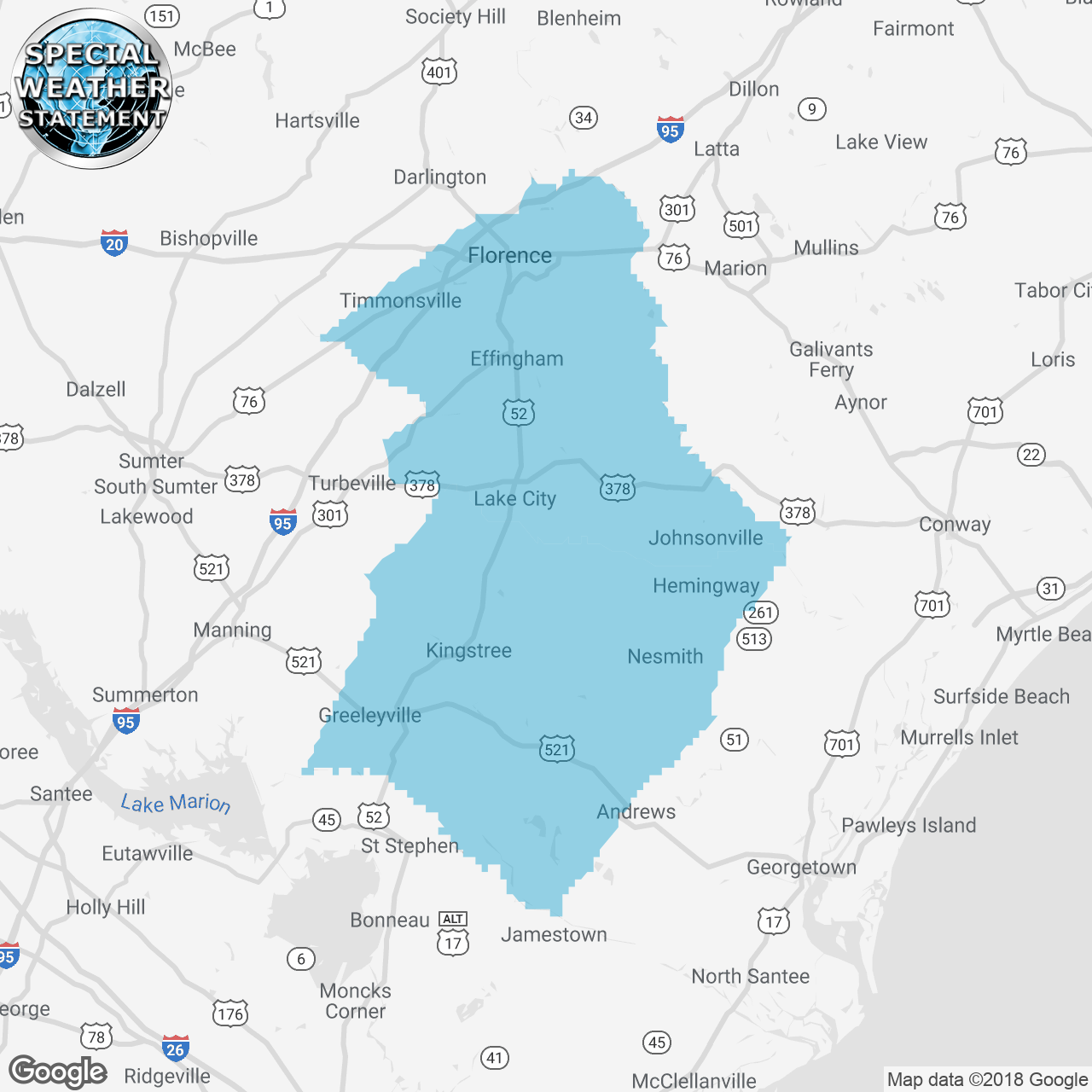 ...Strong thunderstorms will bring gusty winds across Williamsburg County... At 247 AM EDT, Doppler radar was tracking strong thunderstorms along a line extending from near Manning to near Eastern Lake Marion. Movement was east at 45 mph. Winds in excess of 40 mph will be possible with these storms. Locations impacted include... Lake City, Kingstree, Trio, Salters, Hebron, Cades, Gourdin, Scranton, Lane, Greeleyville, Lake City Community Hospital and Williamsburg Regional Hospital.