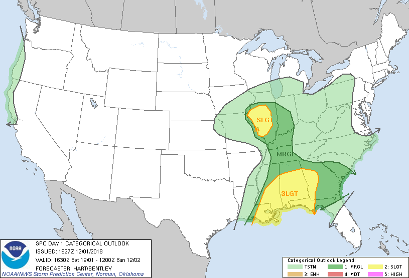 SPC Categorical Outlook for December 1st, 2018. Source: National Weather Service Storm Prediction Center.