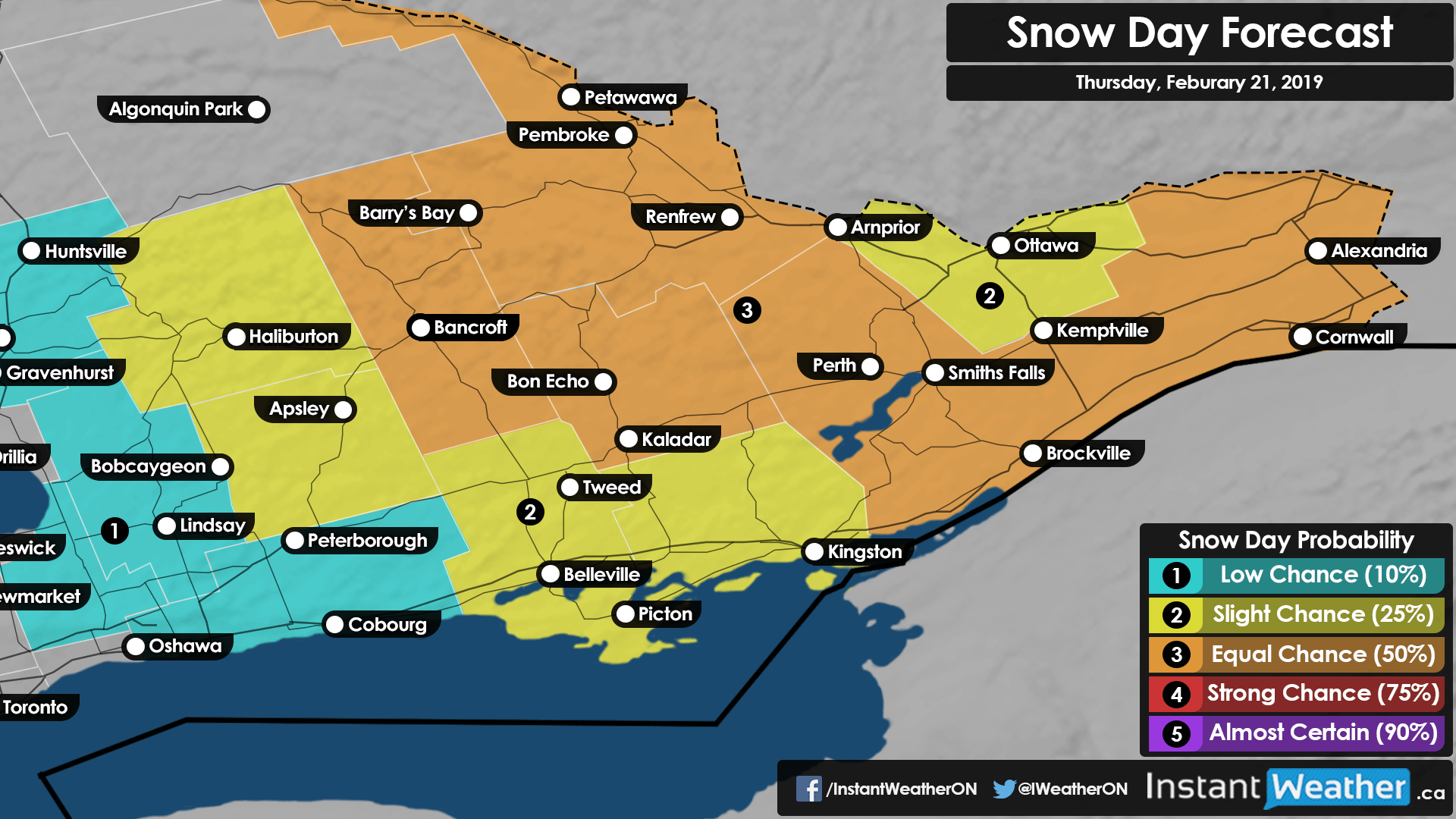 Southern Ontario: Snow Day (Bus Cancellation) Forecast for Thursday, February 21, 2019