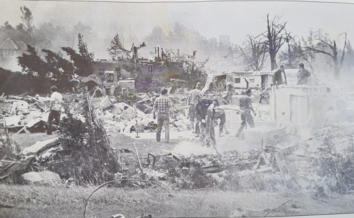 John & Henry Schut of H&J Schut Construction (my dad and uncle) had built a subdivision of roughly 40 homes in the southwest corner of Woodstock. It took a direct hit, and all the homes had to be rebuilt. One home had an aluminum rowboat lodged in the rafters of the garage. Not only was it impossible for the homeowners to have stored such a boat there, but it wasn't even theirs. We never found out where it actually came from, or who owned it.