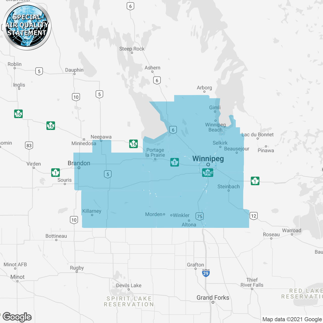 In areas affected by smoke from Wildland fires, manitobans are encouraged to: - Limit outdoor activity and/or strenuous physical activity; if breathing becomes difficult or uncomfortable, stop or reduce the activity - reduce exposure to smoke by staying indoors or moving to areas with cleaner air, as conditions can vary dramatically by area - turn off furnaces and air-conditioning units that may draw smoke indoors - keep indoor air cleaner by avoiding smoking or burning other materials