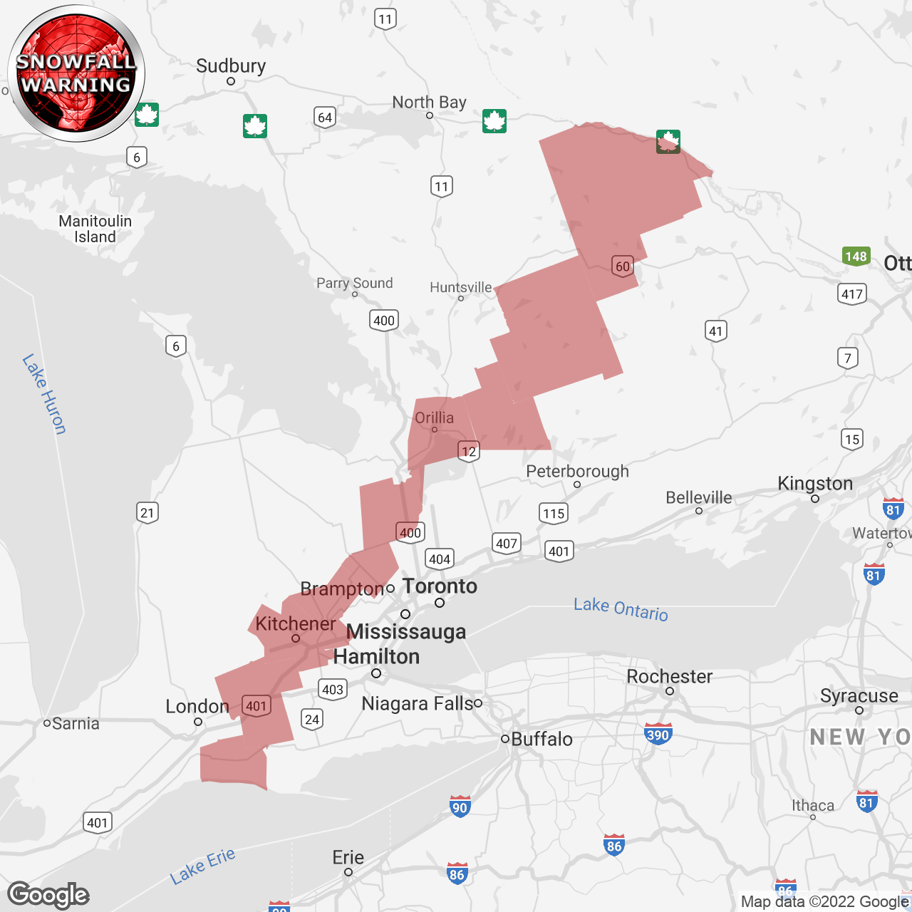 Hazards: Total snowfall amounts of 15 to 25 cm. Snow, at times heavy, with peak snowfall rates up to 2 to 5 cm per hour possible this morning, which could significantly reduce visibilities. Local blowing snow at times due to winds gusting up to 60 km/h.