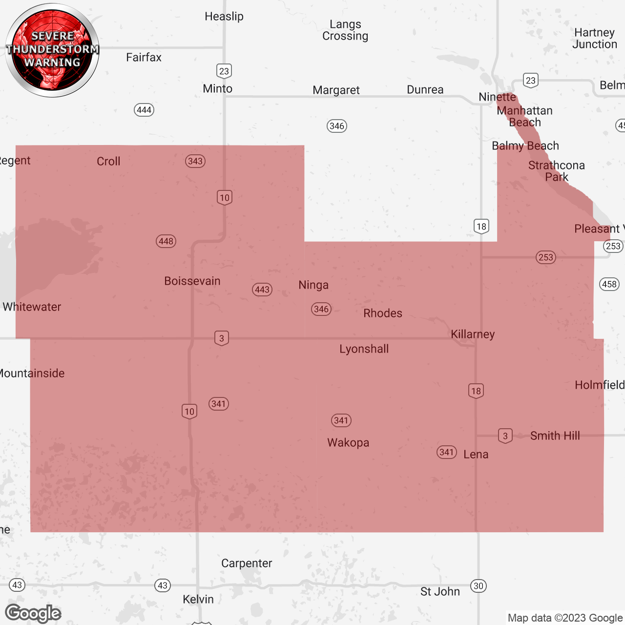 Please continue to monitor alerts and forecasts issued by Environment Canada. To report severe weather, send an email to mbstorm@ec.gc.ca or tweet reports using #MBStorm.