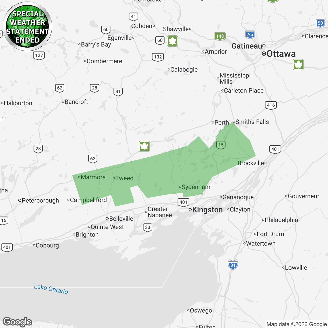 Please continue to monitor alerts and forecasts issued by Environment Canada.