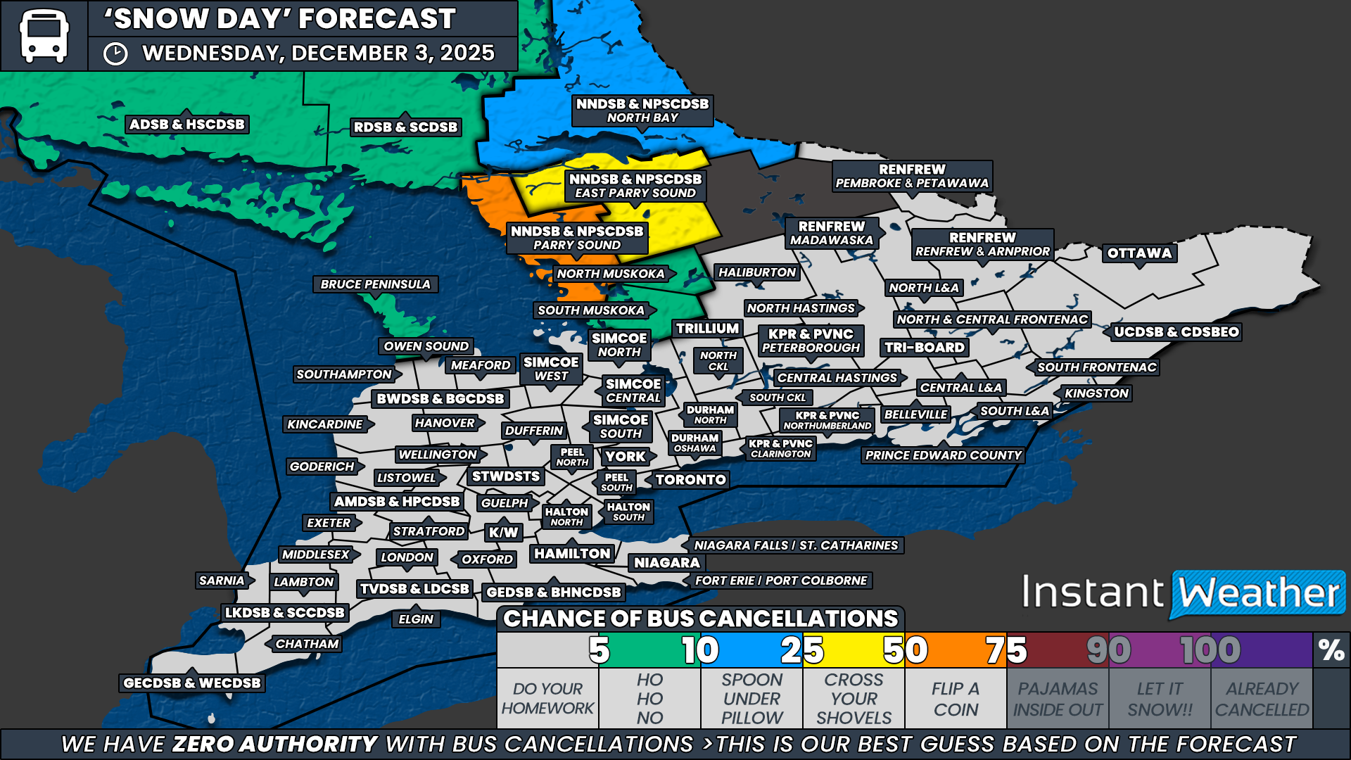 Disclaimer: Instant Weather has zero authority when it comes to bus and school closures.